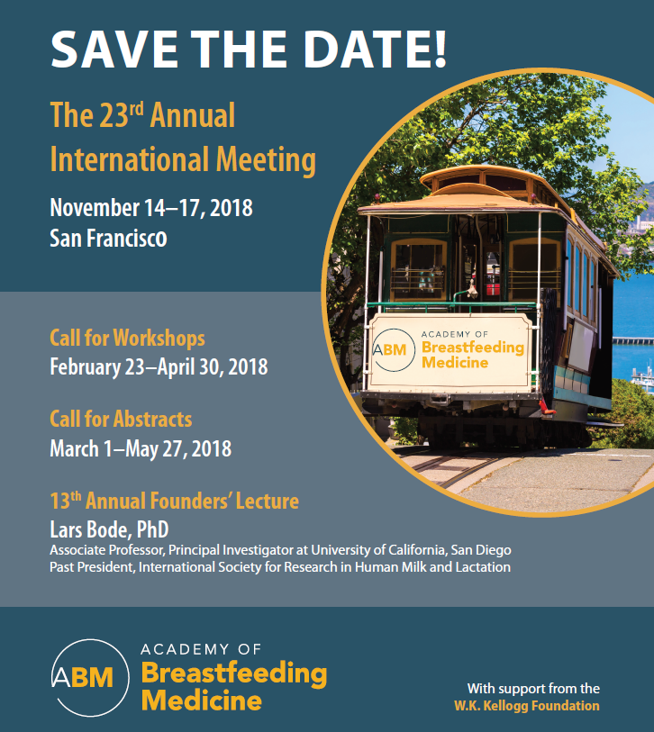 In 2005, the Founders of the Academy of Breastfeeding Medicine, chose to recognize the scientific accomplishments in the field of breastfeeding medicine by helping to fund a lecture that would be presented each year at the Annual Meeting of ABM. The lecture is given by a renowned, accomplished scientist in the field of human milk and lactation, who is continuing to work and publish in his/her field. The Founders’ Lecture will be published in the peer-reviewed journal, Breastfeeding Medicine.