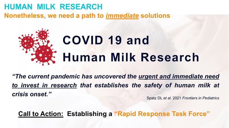 "The current pandemic has uncovered the urgent and immediate need to invest in research that establishes the safety of human milk and safety at crisis onset. Otherwise, the gap in knowledge leads to fear-based confusion, misinformation, and the amplified risk of breastfeeding cessation despite the well-documented benefits of human milk and breastfeeding."